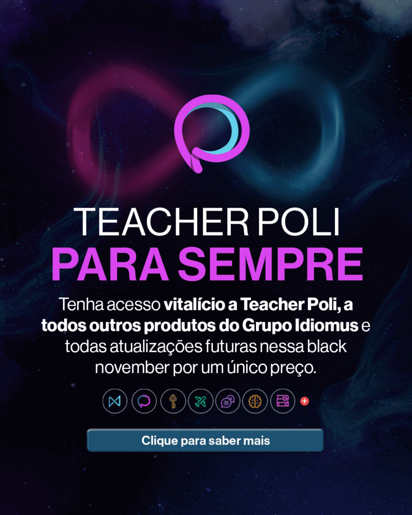 A Teacher Poli é uma inteligência artificial desenvolvida para ser a melhor professora de inglês do mundo. Ela foi criada pelo grupo Idiomus, e é 100% treinada no método APA. A Poli está disponível 24 horas por dia, 7 dias por semana, permitindo prática ilimitada de conversação.
